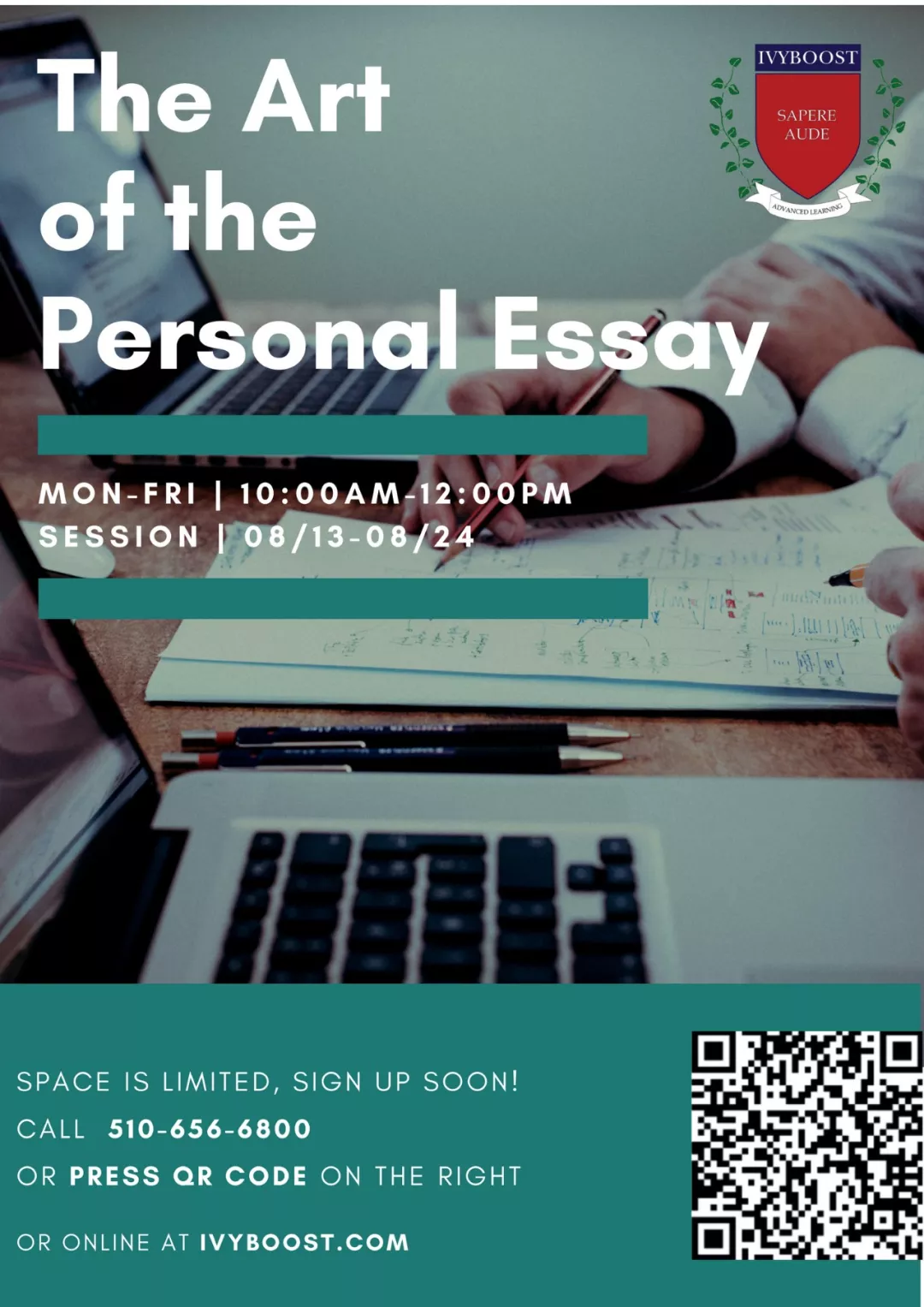 “The Class was good. It allowed us to brainstorm and prepare ahead of time for college application. IvyBoost accomodated the class well. Food and water provided as well as comfortable environment. –J.L. ”