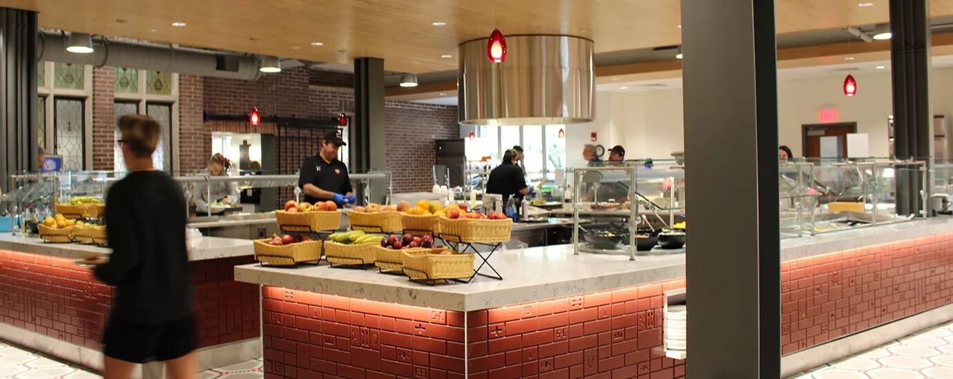 学校总共有8个食堂,分别建在学校各个宿舍楼附近。除此之外,学校周边在这两年加紧建设,陆续成立了四家中餐店,一家日料店,一家炒冰淇淋店,一家KTV,还有一家著名的韩国炸鸡店。距离学校最近的中国超市在沃尔玛对面,需要开车20分钟到达。